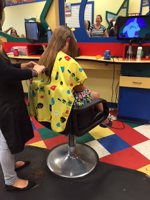 The weekend before school was going to start for Abigail, we went to Cookie Cutters to get Abigail and Madeline's haircuts.